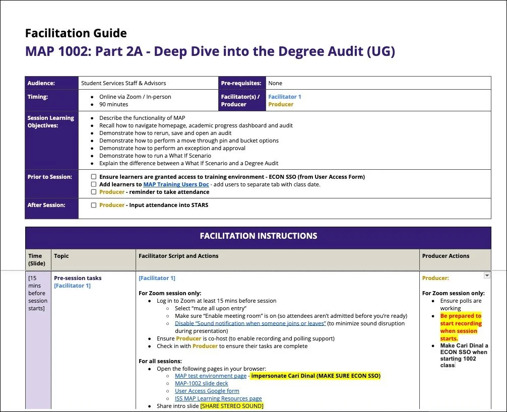Collaborating with the Degree Audit Team and SMEs to identify learning needs.